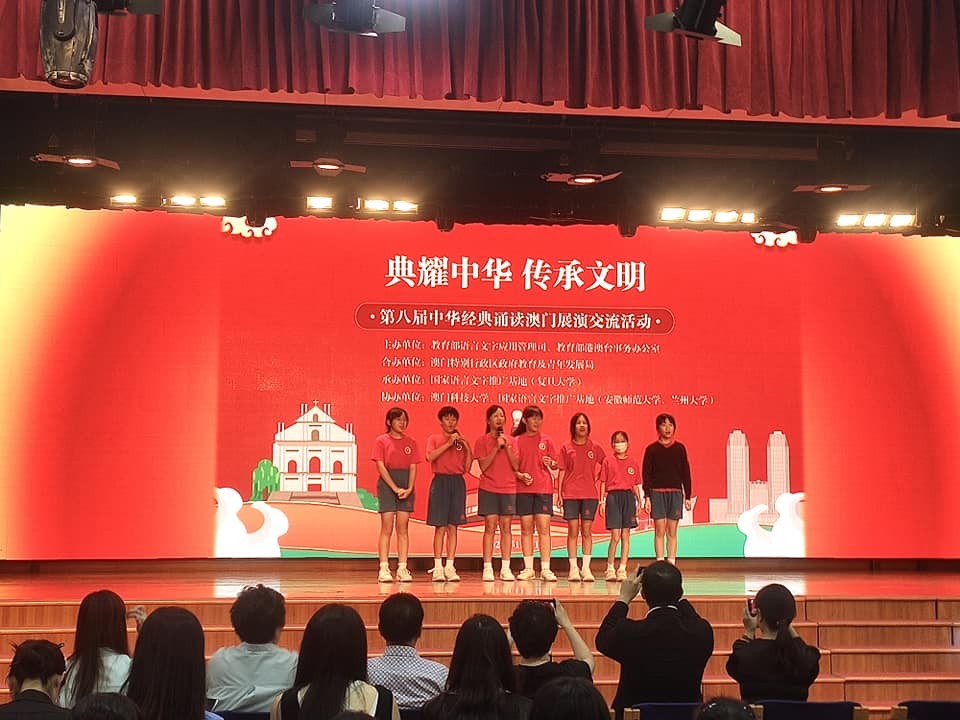 第八屆中華經典誦讀澳門展演交流活動代表團於11月10日到訪本校,一眾來自蘭州大學、復旦大學、安徽師範大學和安慶再芬黃梅藝術劇院的師生,透過朗誦、戲曲、舞蹈、文學常識問答和急口令挑戰等,與本校小六級同學互動,現場氣氛熱鬧。