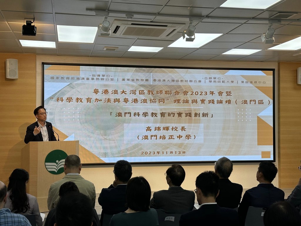 高錦輝校長昨受邀出席粵港澳大灣區教師聯合會2023年會暨「科學教育加法與粵港澳協同」理論與實務論壇,並擔任演講嘉賓,分享「澳門科學教育的實踐創新」。