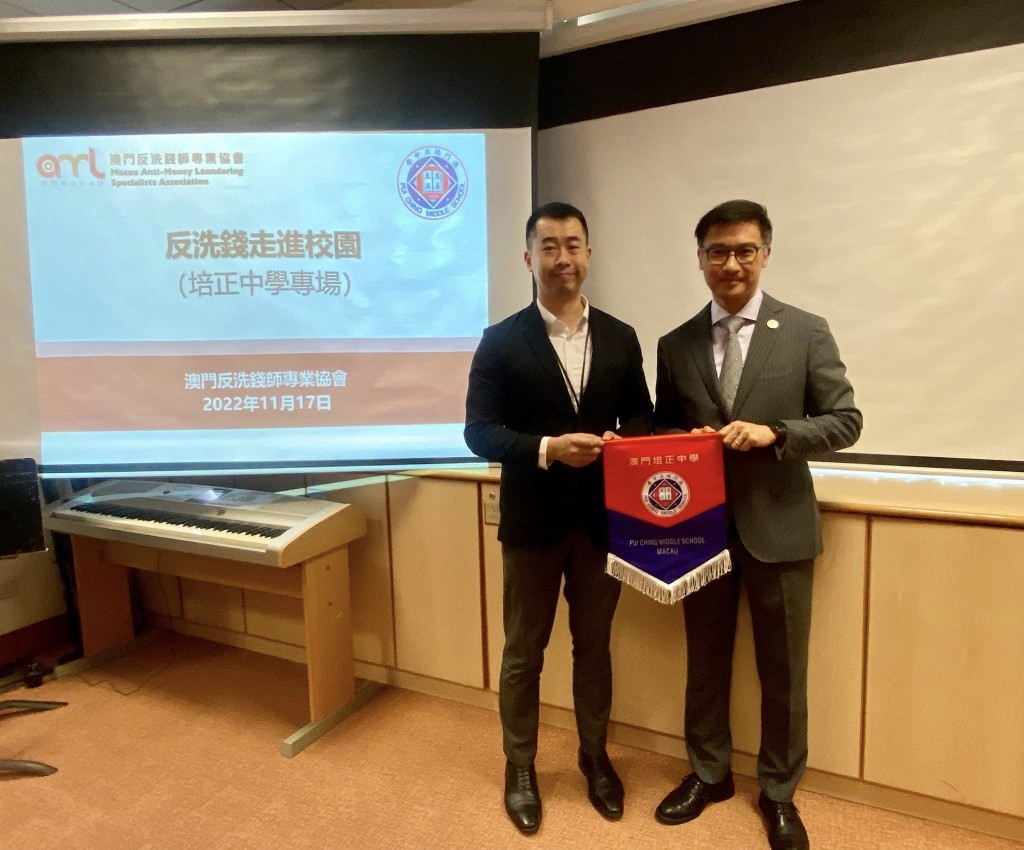 培正與中銀合辦「走進校園 趣談金融」系列課程於11月22日以反洗錢為題,邀請澳門反洗錢師專業協會李紹文副理事長向本校高一級同學普及反洗錢知識,分享常見的詐騙案例及講解澳門反洗錢專業發展。