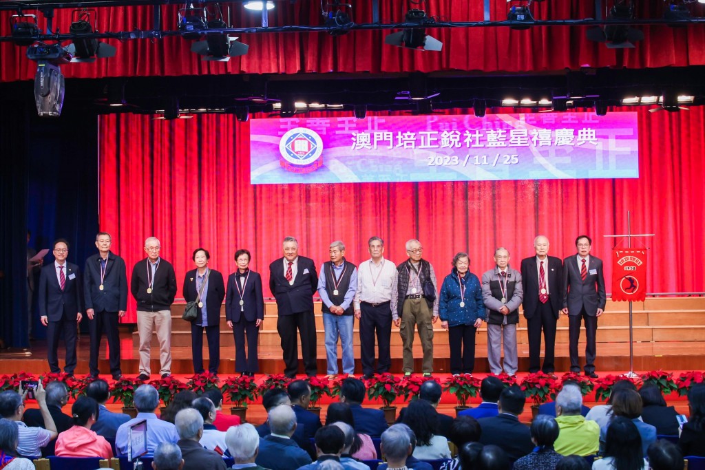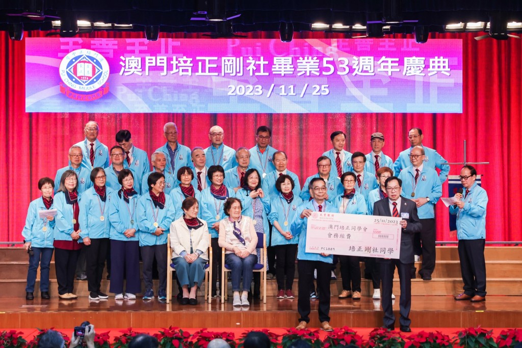 澳門培正同學會今天舉行培正同學日,多社校友回到母校參與禧慶活動,各地培正學校及同學會領導亦聚首一堂。今年有銳社畢業65周年藍星禧、剛社畢業53周年補辦金禧、基社畢業50周年金禧、英社畢業45周年藍寶石禧、凱社畢業40周年紅寶石禧、曦社畢業35周年珊瑚禧、學社畢業30周年珍珠禧,以及由中學五年制轉回三三制的1998年級啟社畢業25周年銀禧加冕。
