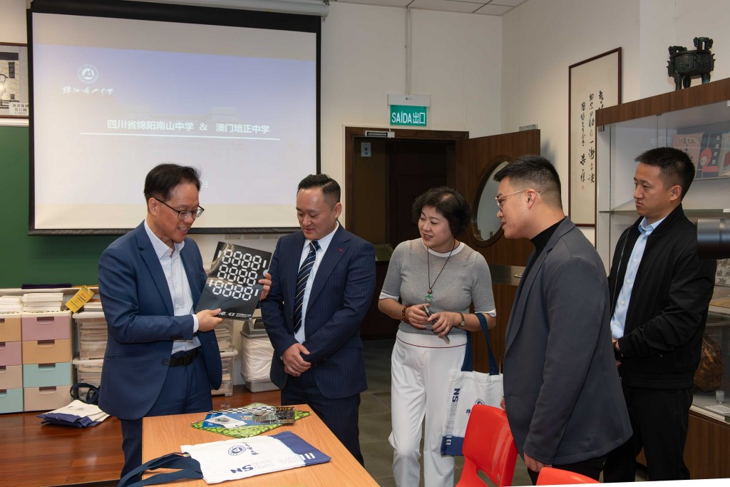 同時,姊妹學校的老師們也為我們帶來了一場精彩的創新示範課,展示了一些前沿科技和創新應用的案例,激發了同學們的創造力和想像力。此外,南山中學亦向本校贈送一幅印有兩校校徽的蠟染作品,製作精美;而本校則向對方致送由學生自行創作、具有本澳特色的大賽車文創產品。交流活動還包括了一個蠟染工作坊,讓學生們有機會實踐和體驗手工藝的技巧。