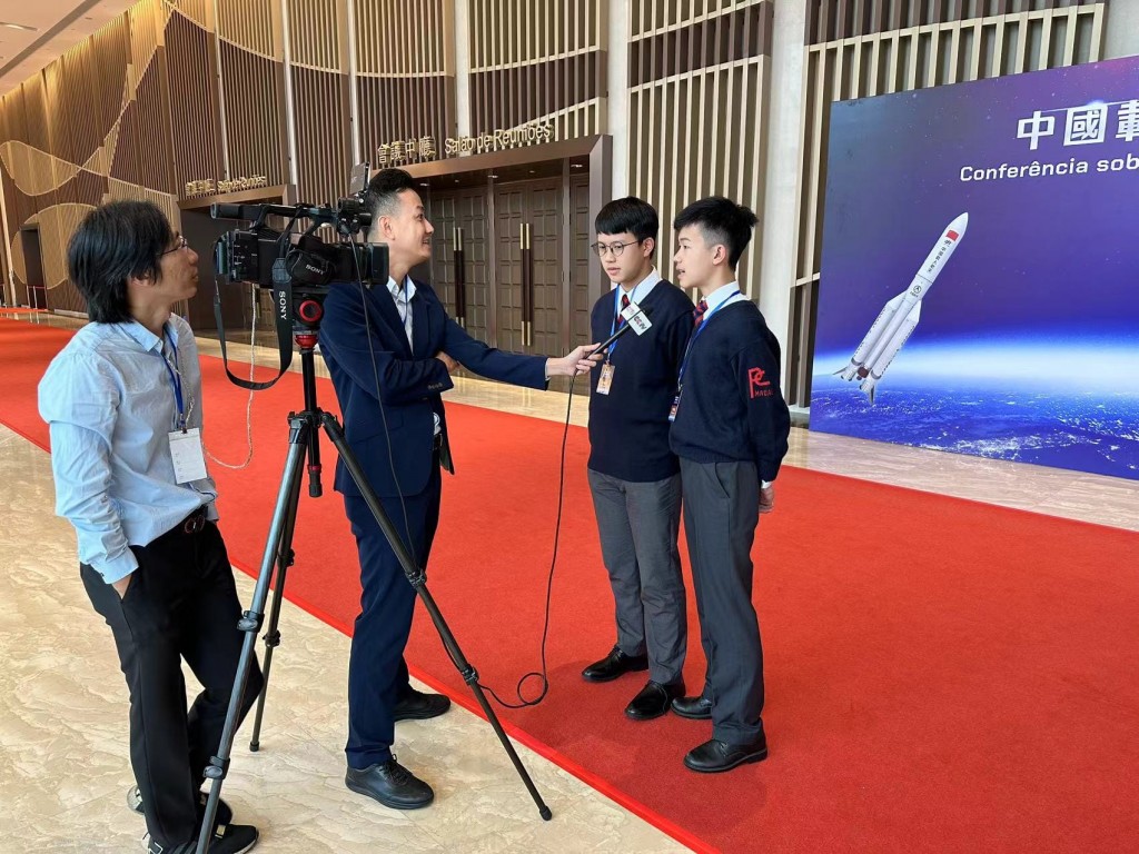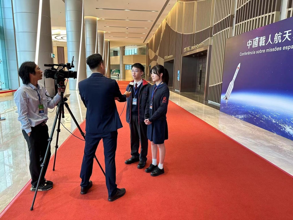 本校高中學生謝愷晴、陳泓俊、池峰、楊凱業,由李振邦老師帶領,出席中國載人航天專場報告會,會後接受多家媒體訪問,分享是次活動心得。