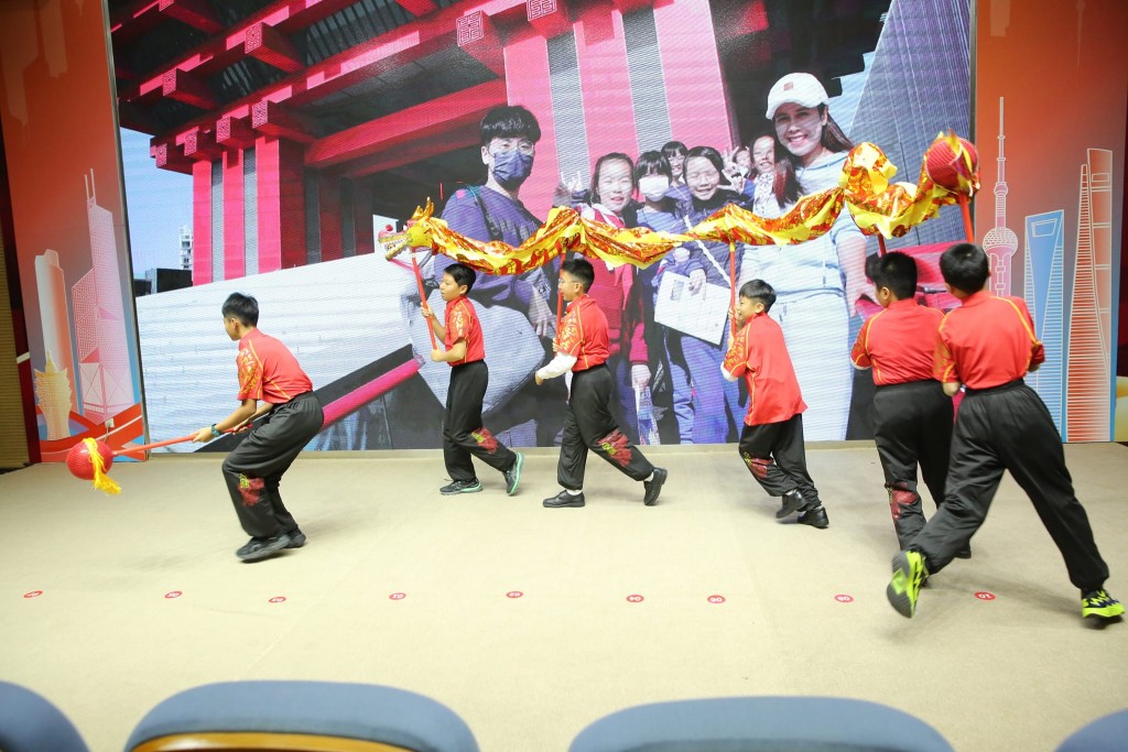 其中,活動第四天,全體成員參與了上海市銅川學校升旗儀式,本校小五級王妤心同學作為「中華文化小使者」代表發言,分享在上海的所見所聞所感。在第五天的閉營儀式上,本校與華東師四中學生們合作表演了節目《那個江畔》,他們積極投入的表演贏得了全場熱烈的掌聲。