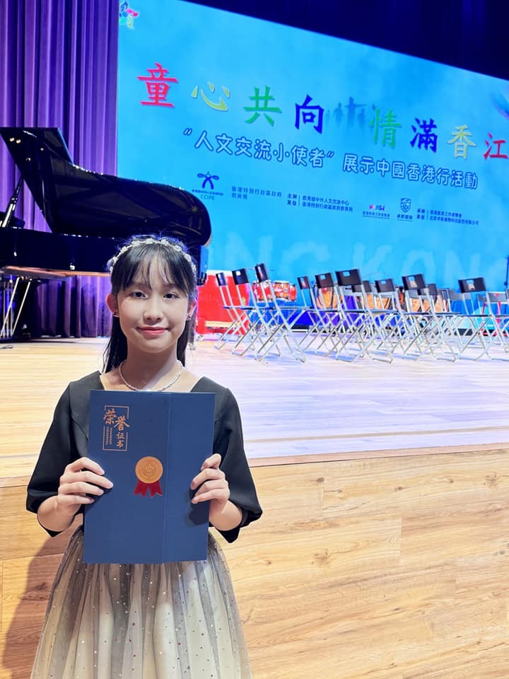 本校小六正陳芷澄同學作爲澳門小使者代表出席了此次活動的開幕式及閉幕式,並擔任了活動的小主持人。陳同學與北京、成都、福州、深圳、香港的小主持人一起將活動現場的氣氛烘托得熱烈又溫馨,充滿活力、大方得體的主持風格,充分展示了本校學生的風采。活動結束後,陳芷澄同學獲教育部中外人文交流中心頒發的榮譽證書。