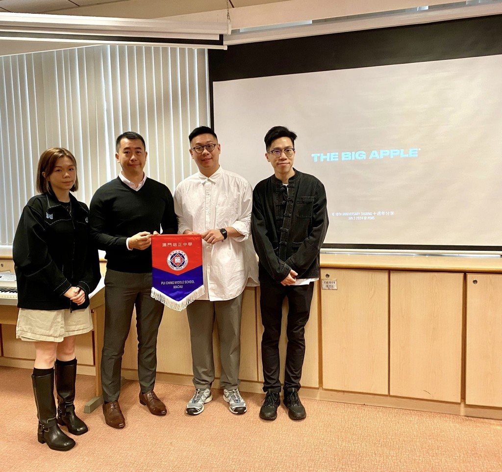財務及創意總監郭賢豪講述The Big Apple創辦目的是為了填補澳門在時尚、零售和文化方面的市場空缺,並將其打造成為澳門當代時尚、球鞋和街頭文化的聚點,希望為澳門市民和旅客提供更多選擇。當中的心路歷程成為同學的借鑑,為未來發展打好基礎。