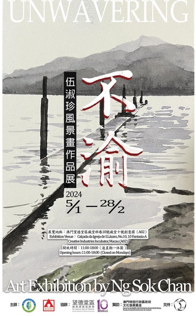 由澳門青年美術協會、澳門美術協會主辦,望德堂區創意產業促進會、瘋堂十號創意園協辦,伍號工作室支持,澳門特別行政區政府文化發展基金贊助的《不渝》──伍淑珍風景畫作品展於今日在瘋堂十號創意園花園舉行開幕式,展出約70幅水彩作品。