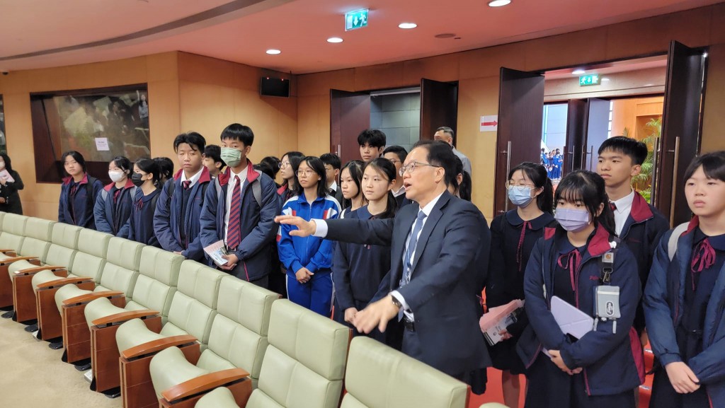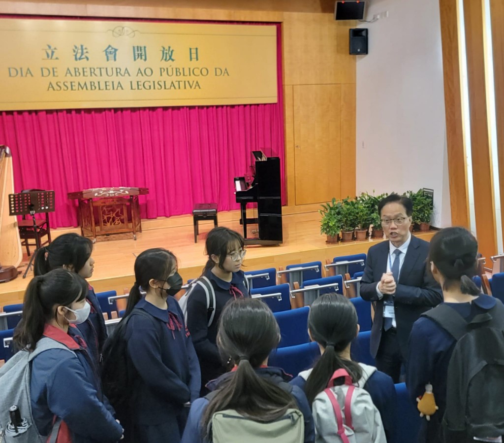 1月6日,本校法律研習小組及葡文班組織數十名同學藉開放日之際到訪澳門立法會,在本校校長兼立法會議員高錦輝博士的帶領下,進入立法會參觀。高校長向同學們仔細介紹各項日常工作,還有會議廳和委員會辦公室等設施,途中同學們更把握機會向多位立法會議員發問和合照。是次活動讓同學們對澳門立法會的組織運作有更深入的了解,擴闊視野。
