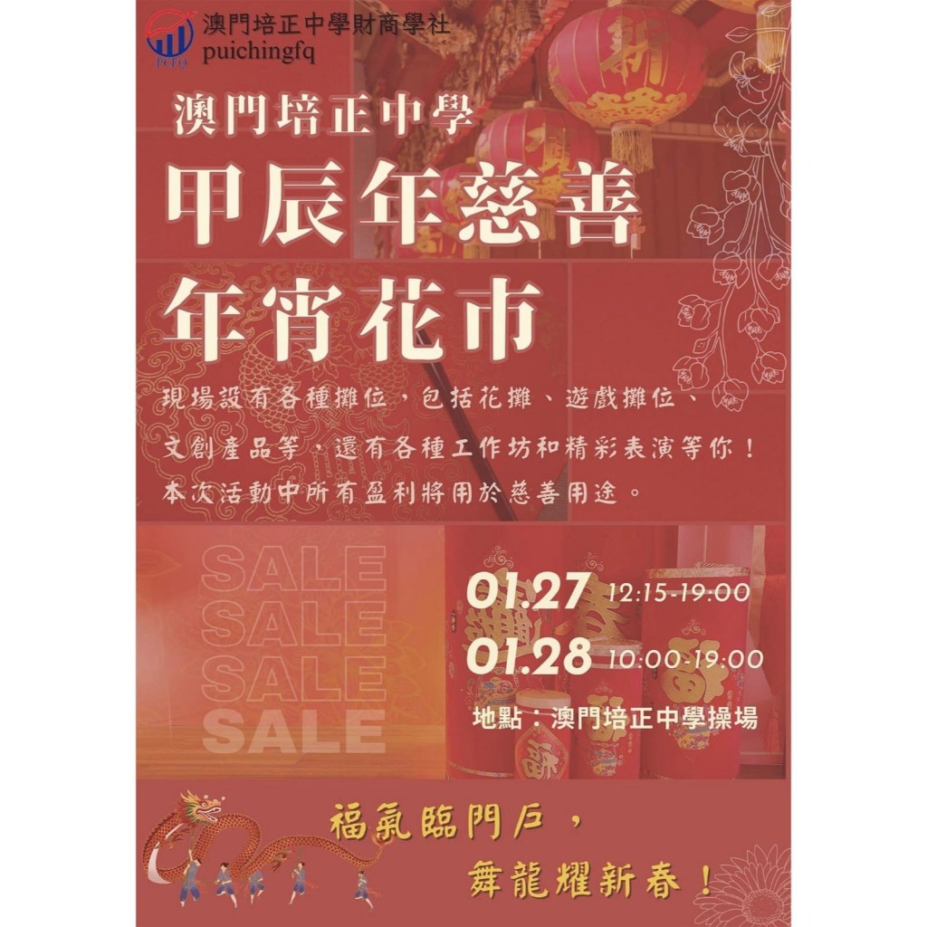 活動由本校財商學社主辦,各款文創產品、應節手工以及寓意喜慶吉祥的年花應有盡有。現場亦設遊戲攤位、手作工作坊及快閃表演節目。花市收益將全數撥作慈善用途,歡迎大家一同「逛年宵」,感受濃厚的節日喜慶氣氛。