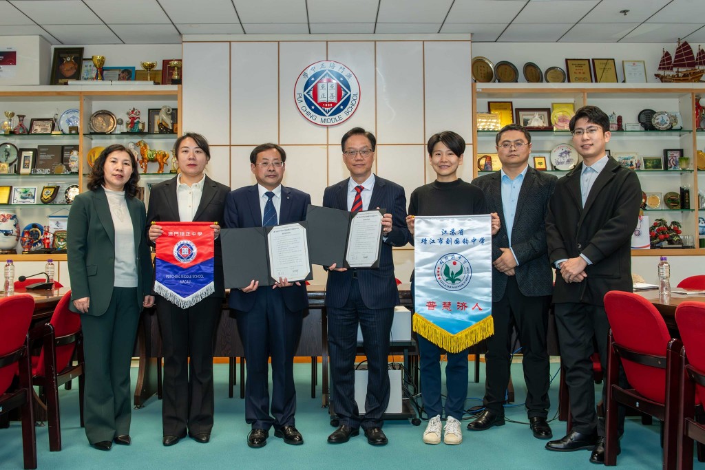 澳門培正中學與江蘇省靖江市劉國鈞中學締結姊妹學校。簽約儀式於今天中午舉行,高錦輝校長代表澳門培正中學,與代表靖江市劉國鈞中學的蔣金才副校長簽署友好合作關係協議。兩校將通過一系列互訪項目、資訊分享、學科合作等,加強蘇澳兩地教育聯繫,促進兩地學生往來。