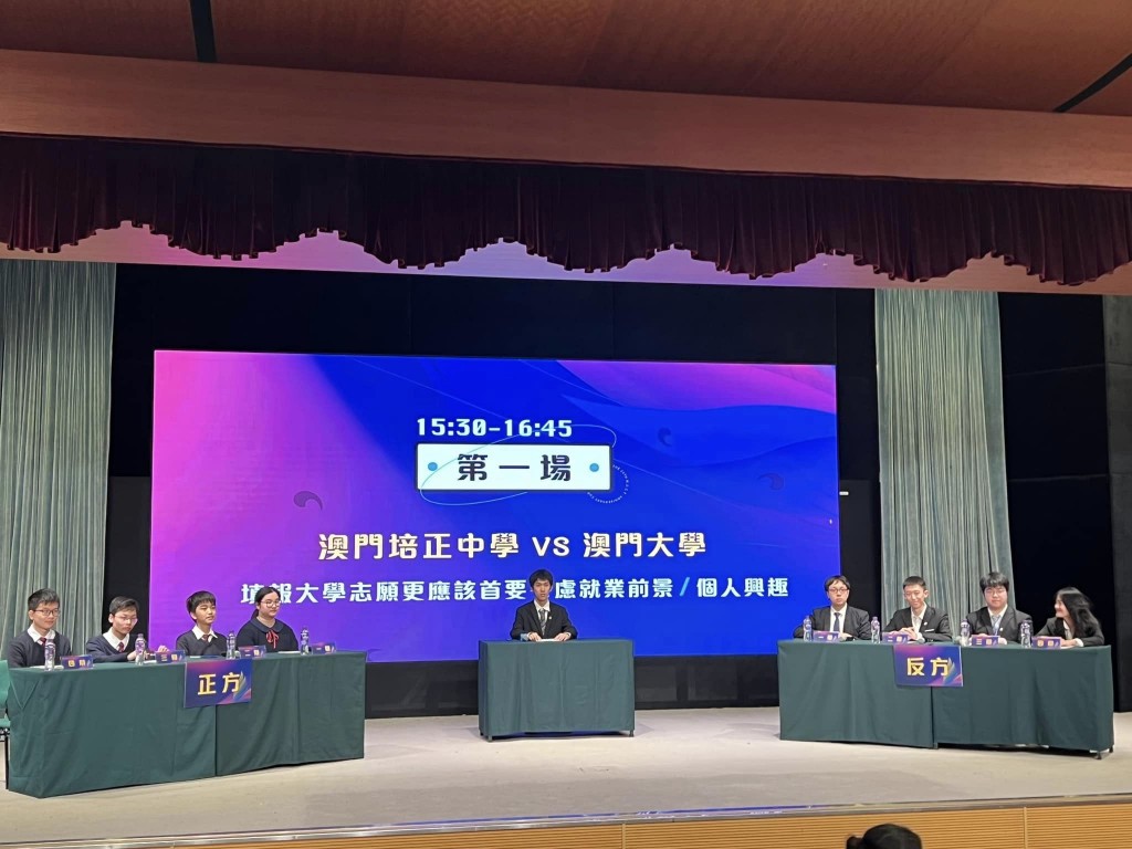 今天下午,本校辯論隊應澳門科技大學邀請,參加2024澳門科技大學「邁步未來」校慶盃普通話辯論交流賽,並與澳門大學普通話辯論隊進行交流切磋,比賽辯題為 “ 填報大學志願更應該首要考慮就業前景/個人興趣 ”,我校為正方,雙方同學準備充足,整場比賽非常精彩。賽後我校同學和大學的前輩們爭取機會交流,氣氛熱鬧!