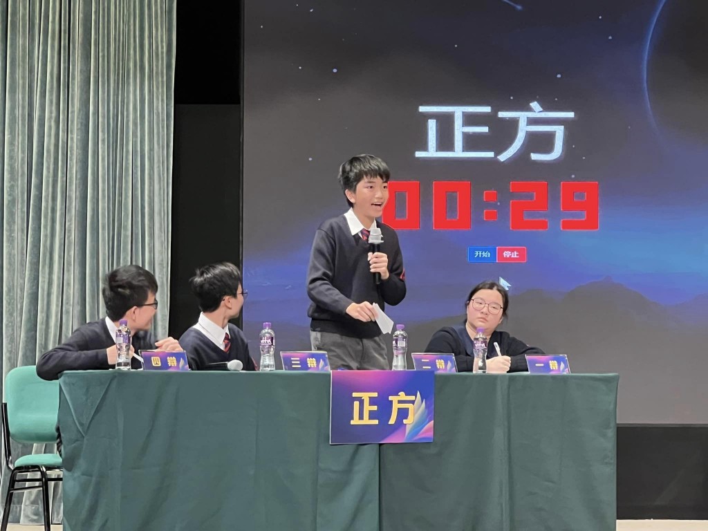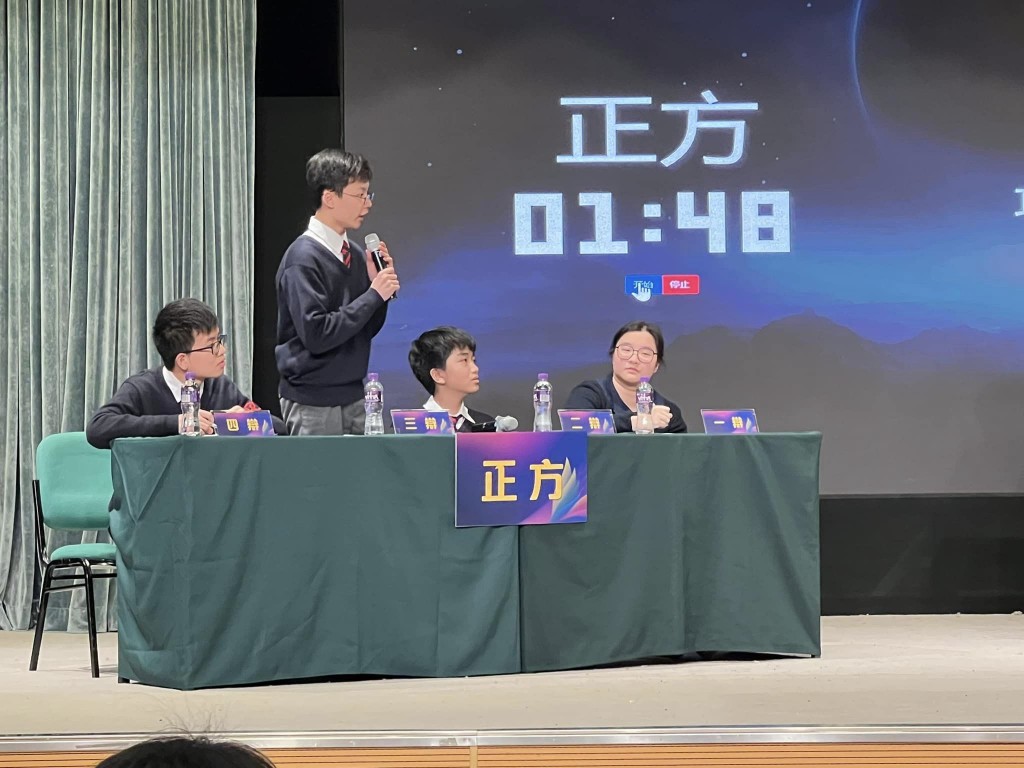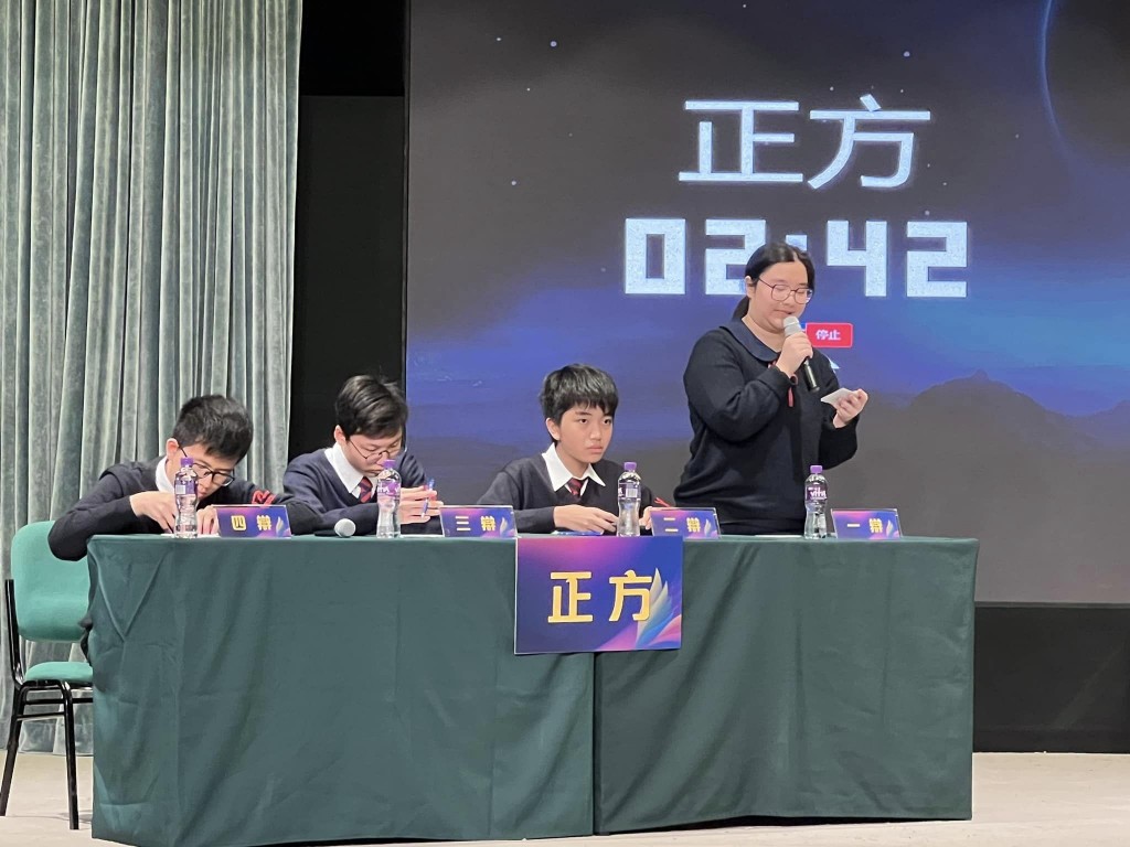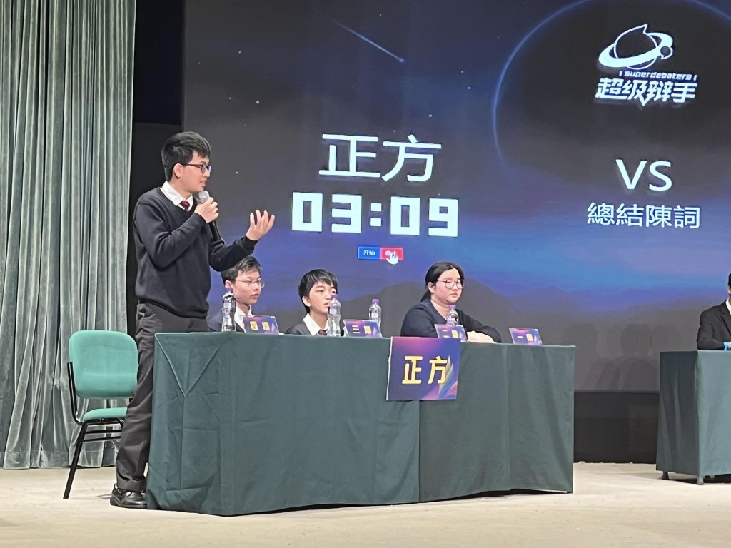 本場比賽不設勝負獎項,而本校初三級曾煒彬同學作為正方四辯與對方辯友一辯同學同獲最佳辯員獎。