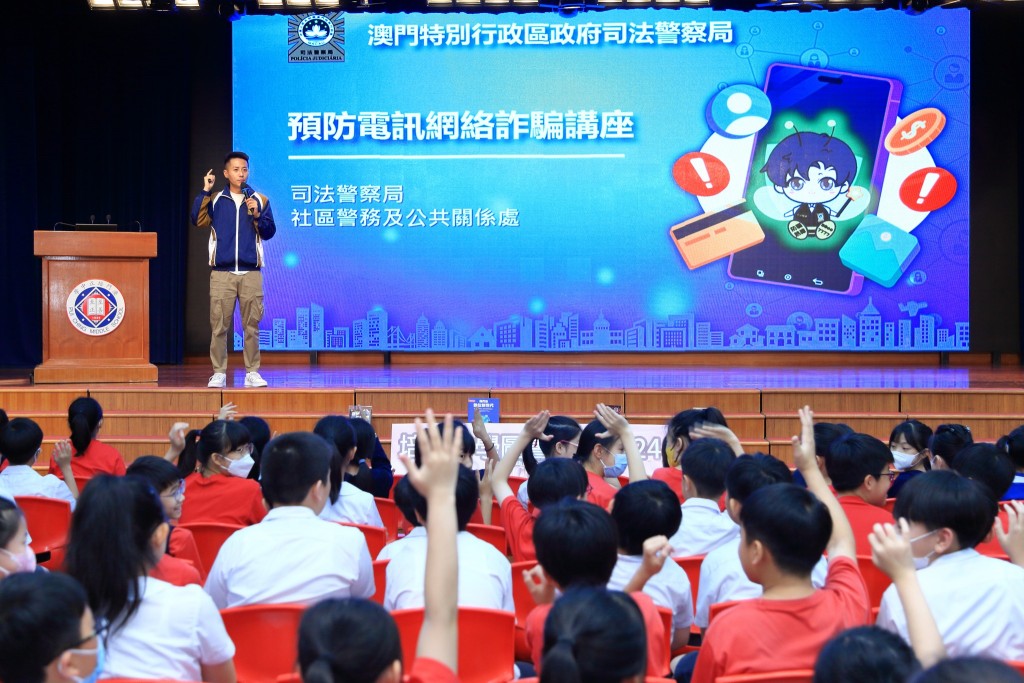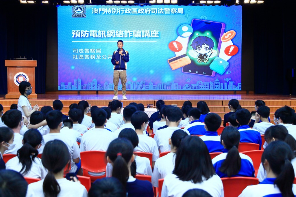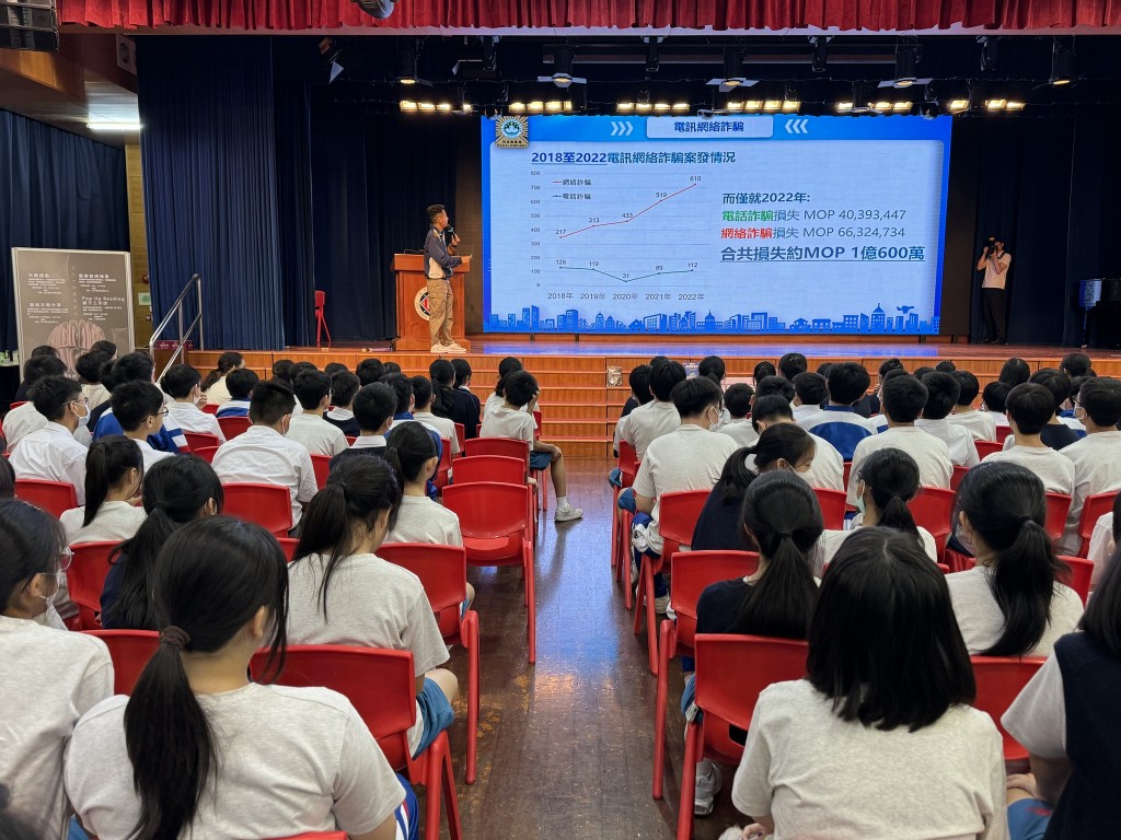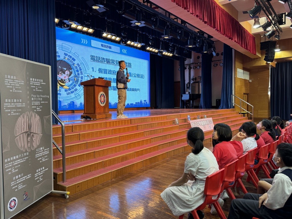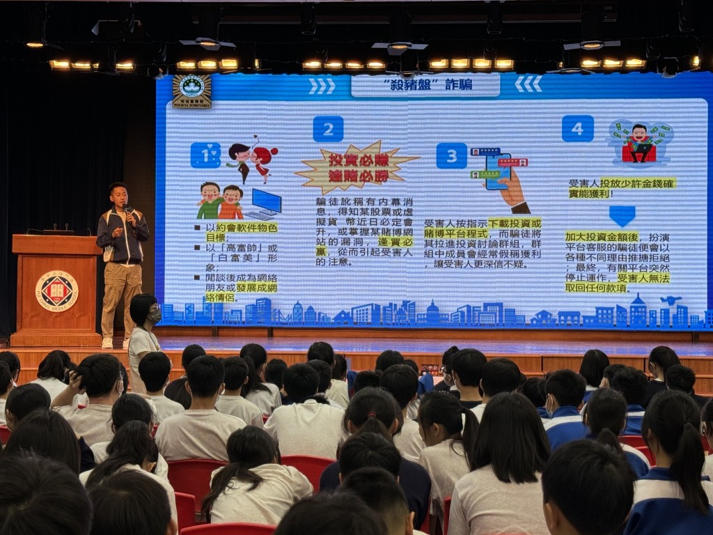 司警局首席刑事偵查員王震先生從不同的角度向師生講解分享,包括八種常見的詐騙手法、「特務」影片、分析受害人墮入騙局的原因、相應的防騙策略與求助方法,從而提高師生的防騙意識,注意保護個人私隱,加強辨識真假的能力,最後同學們藉着發問互動環節,深化所學到知識,共築安全生活環境。