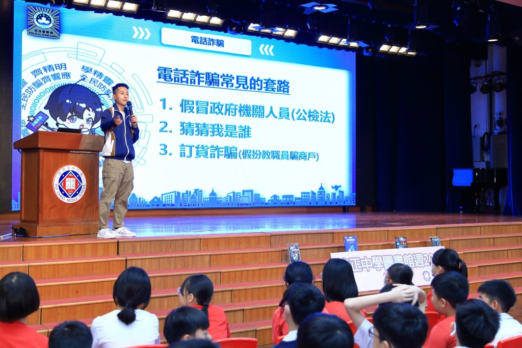 因應詐騙的手法層出不窮,為預防及遏止電訊網絡詐騙犯罪活動,培正圖書館在4月8日早上邀請司警局為小五至初二的師生進行「預防電訊網絡詐騙專題講座」,合力打造「全民防騙」社會。這次講座為培正圖書館週2024系列活動拉開序幕。