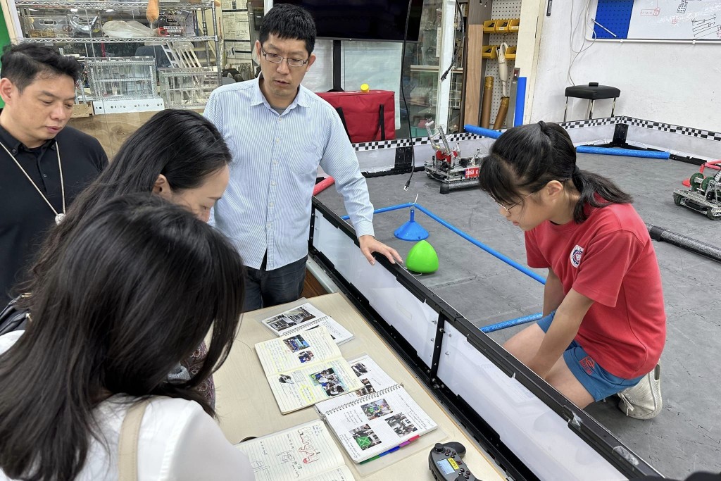 昨天下午,三位來自上海交通大學的嘉賓到訪本校,了解本校創新科教課程的發展,並就基礎教育和高等教育之間銜接交流意見。參觀期間,本校師生展示了一些近年著力研究的科研項目和成果,其中VEX機械人團隊的同學也介紹了其工程筆記,分享團隊的研發思路、參賽體會和心得等。