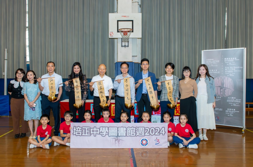 本館邀請了高錦輝校長、郭敬文副校長、陳敬濂副校長、楊珮欣副校長、梁永棠主任及黃健主任,於4月24日早上為「培正中學圖書館週2024」主持揭幕儀式。閱讀如同一碗深受中國人喜愛的壽面一樣,不僅充滿營養和滋味,也象徵了祝福與傳承。透過儀式希望學校為學生注入養份,讓他們茁壯成長,成為社會未來棟樑。