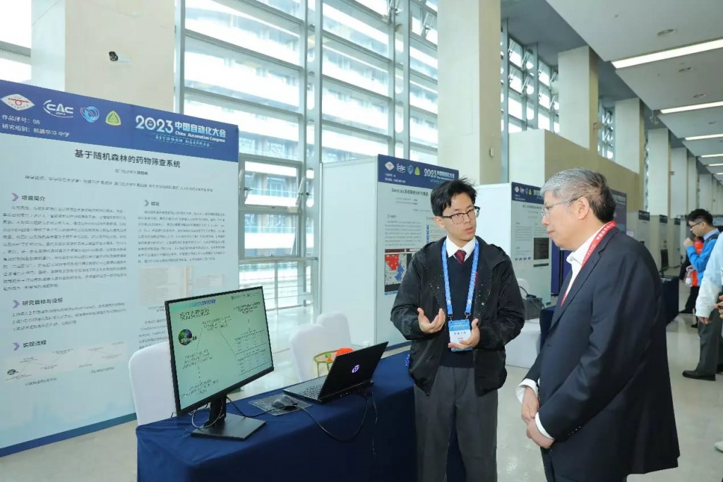 他們經過兩個多月的學習探究和分組課題研究後,在11月4日進行了線上項目彙報和答辯,並接受了來自中國科學院、復旦大學、清華大學、人大附中等專家教授的提問和建議指導。最後,陳鶴珣同學的作品《基於隨機森林的藥物篩查系統》成功被評選為6個青少年AI教育的重要成果之一,參加11月17日—19日在重慶召開的2023中國自動化大會(CAC2023),並展示彙報。在大會期間,多位國家級院士對陳鶴珣的作品作出點評和指導。陳景林的作品為《人工智慧識別澳門道路交通路牌》。兩位同學的指導老師都是黃燦霖老師和陳嘉賢老師。