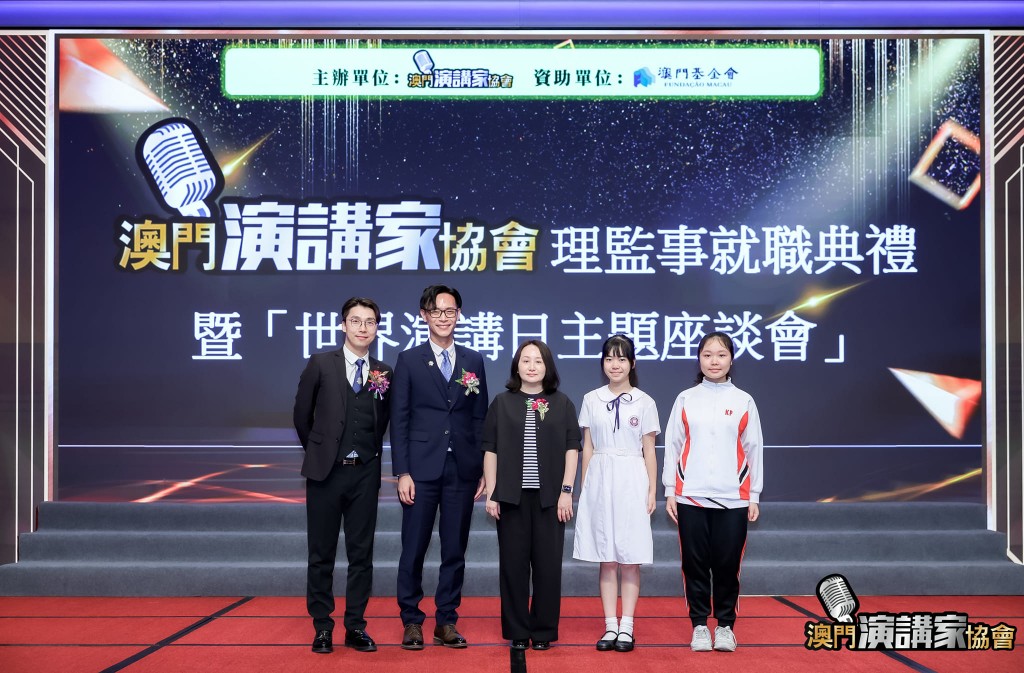 澳門演講家協會第三屆理監事就職典禮及「世界演講日主題座談會」於星際酒店舉行。我校鄭嘉麗副主任(副理事長)及柯志華老師(常務理事)於會上就職。