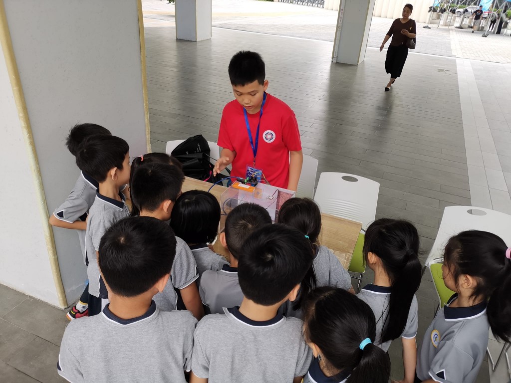 4月30日,林潤薇老師、袁國展老師獲邀帶領學生攜創新作品參與上述活動。林潤薇老師在會上分享本校小學部科普教育的實施經驗,小六級陳榮新同學及呂建霆同學進行了作品展示。