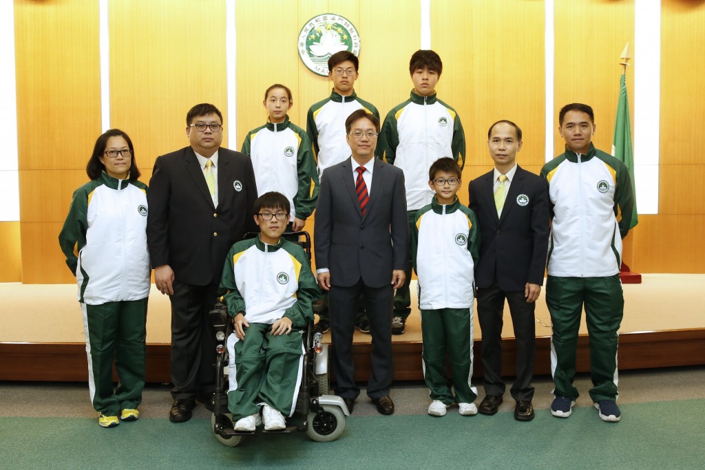 太平洋學生運動會將於十一月廿一至廿九日在澳洲阿德萊德舉行,代表團中有五位成員是本校學生:徐樂勤(輪椅乒乓球)、麥天恩(乒乓球)、陶昶(乒乓球)、葉俊佑(游泳)、呂良海(籃球),同行尚有領隊黃漢榮、徐贊焜、教練梁健華、梁德萍等。今日由高校長陪同到政府總部向社會文化司司長譚俊榮辭行。