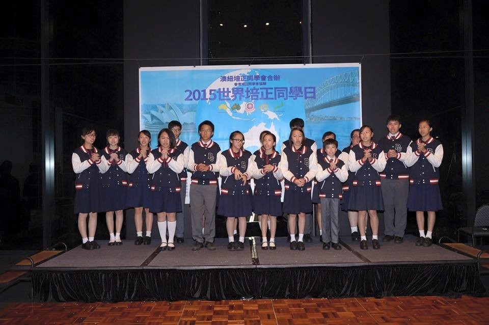 10月25日上午,數以百計來自世界各地的紅藍兒女雲集悉尼歌劇院門前進行世紀大合照。晚上,大聚餐在西田購物中心六樓囍鳳臺舉行,筵開近卅席。我國駐悉尼總領事李華新(廣州培正校友)、各地母校負責人、各地同學會代表上台主禮,不少旅居當地或就讀的澳校校友出席盛會。校友與學生表演節目助興,魔術出神入化,歌曲觸動人心。澳校學生們深深感受到旅外校友們身在異地,心繫培正的愛校情懷。晚會在各社代表薪火相傳儀式及校旗歌聲中結束。