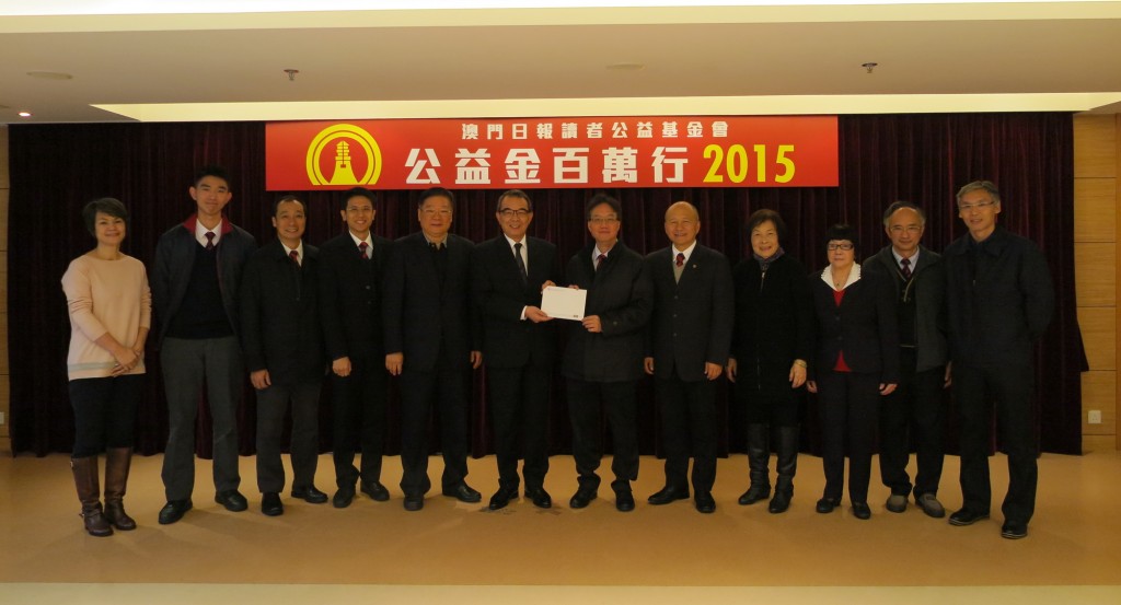 本校師生家長熱心公益,支持公益金百萬行,共籌得澳門幣341,580元、港幣24,120元,今早由高錦輝校長、郭敬文副校長、陳敬濂副校長及師生、家長代表等將善款送交大會。本校學生更出錢出力,為公益向前行,並擔任大會旗手,本校管樂團將演奏樂曲,為步行人士打氣。