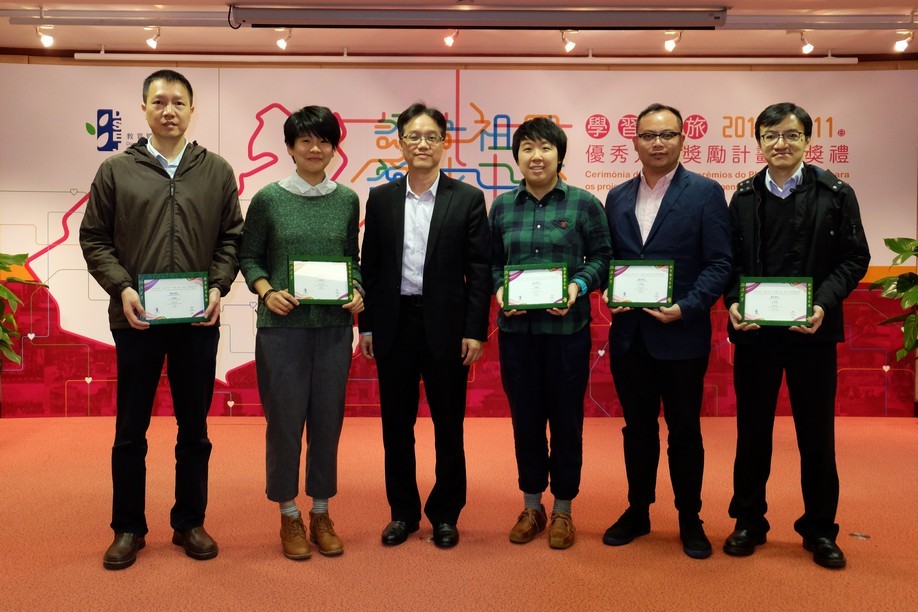 本校教師參與由教青局主辦之“認識祖國、愛我中華"學習之旅優秀方案計劃,李艷琪老師和黃健老師以“台灣˙關愛生命˙服務學習營學習之旅”獲甲等獎,李俊老師獲甲等獎,區穎斌老師和陳仁聰老師以“文創藝術學習之旅”獲乙等獎。