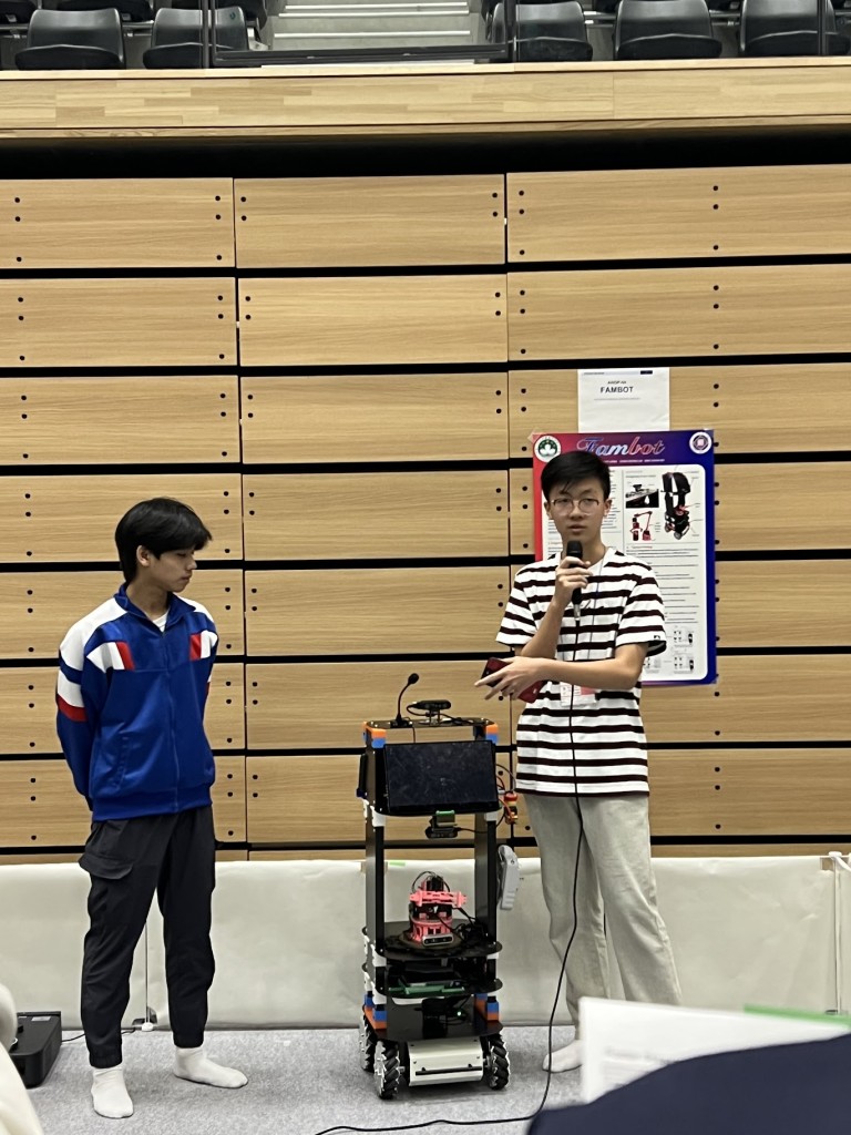 今年5月初,小組共派出5支隊伍遠赴日本參加 RoboCup 日本公開賽,在賽事中取得驕人成績。其中,資深隊伍「FAMBOT」表現尤為亮眼,成功挑戰 RoboCup 高級組別 @Home Open Platform League(OPL),並在激烈競爭中勇奪冠軍,創下澳門中學隊伍在該項賽事中的歷史最佳成績。「FAMBOT」由胡溢朗(高一)、何柏毅(高一)、陳上禮(初三)及麥俊希(初三)組成,隊員自初一起便投身 RoboCup 賽事,累積了豐富實戰經驗。此次他們在技術難度極高的 OPL 組別中脫穎而出,憑藉紮實的技術基礎、靈活的創意思維與團隊默契,成功擊敗多支日本大學強隊,為澳門教育界贏得國際榮譽。