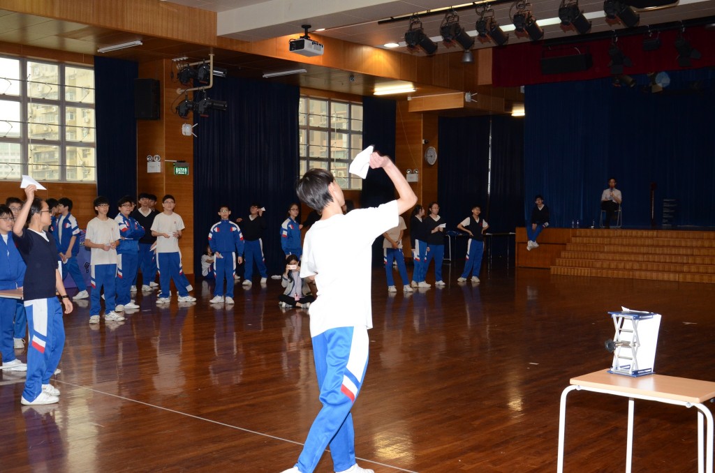 4月20日整個上午,初二級同學進行科學學習活動和競賽。期間邀請了澳門大學科技學院機電工程系劉承堅博士、世界紙飛機大賽最佳隊伍成員馬英同學、余樂健同學來校分享,向同學們介紹紙飛機的飛行原理,讓其見識到世界級選手的紙飛機飛行示範,有助修正自己製作的紙飛機並隨即進行比賽。