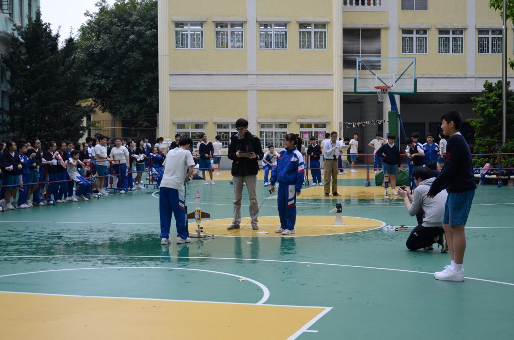 此外,當天也安排了發射水火箭活動,同學按組別發射自己製作的水火箭。其中有組別的水火箭成功在空中打開降落傘,更以全場最長空中停留時間奪得冠軍。同學們就現時的火箭回收技術進行討論和聯想,在研習過程中,探討有關技術將可使航天技術普及至其他中小國家,而太空旅行則變成司空見慣等觀點。