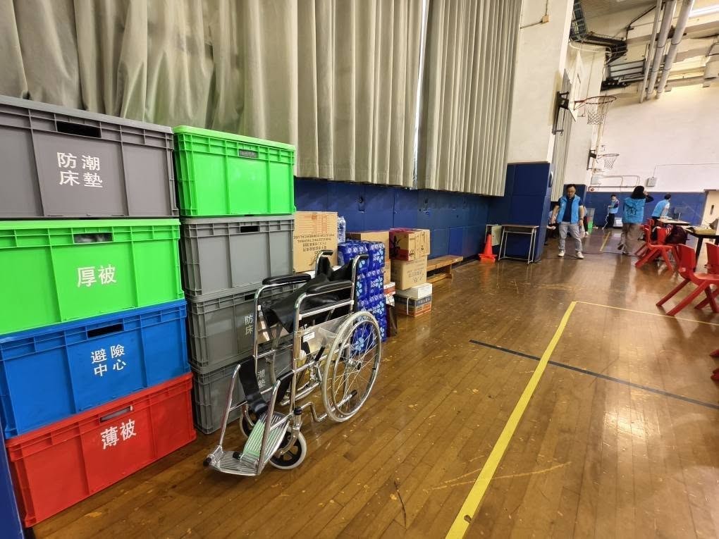 本校聯同教青局人員今早已在H座9樓體育館為應急工作做好準備,避險中心於下午1時開放。員工們亦檢查校園,清理雜物,保障校舍安全。