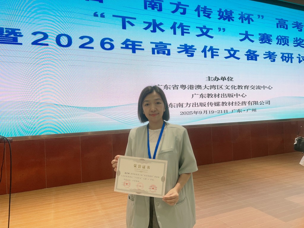 教師獲「南方傳媒杯」高考作文一等獎2025-09-21