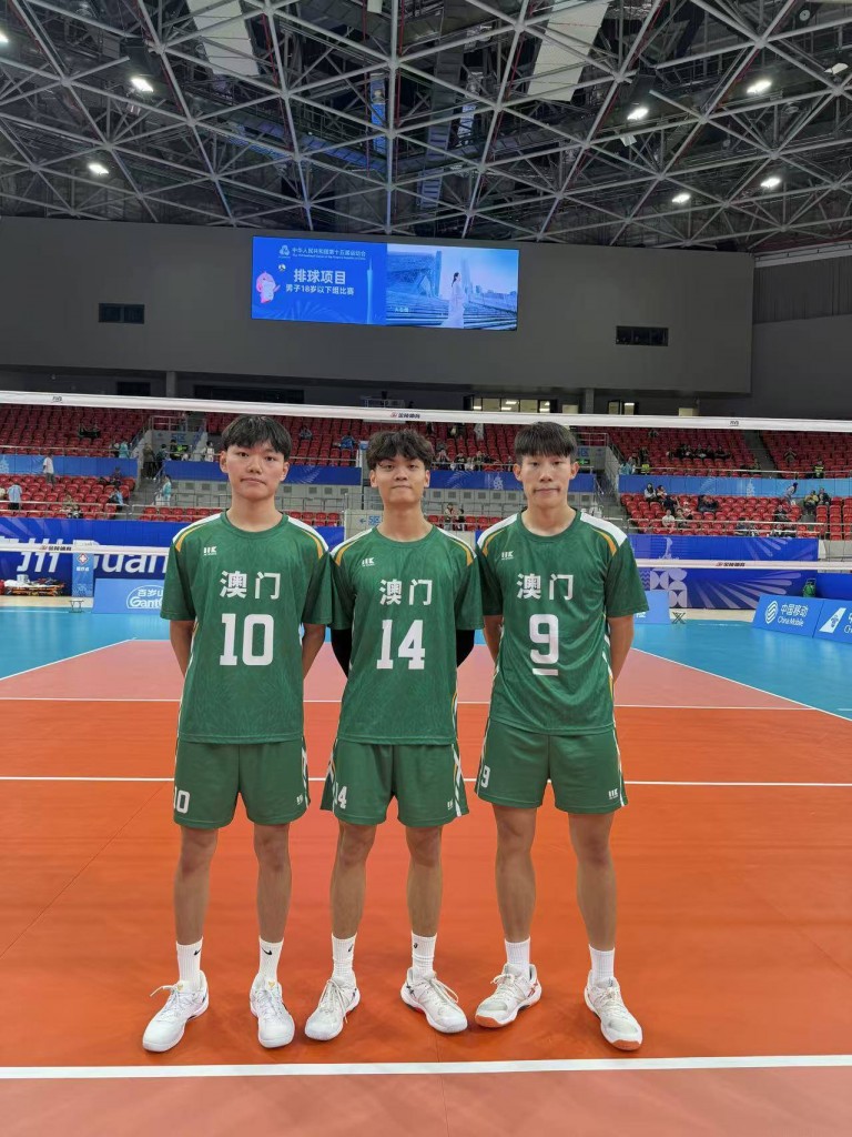 本校魏子諾同學(高三愛)為澳門男子18歲以下組排球隊隊員,與本校兩位剛畢業的校友林俊翹、官皓廉於廣州賽區進行比賽。