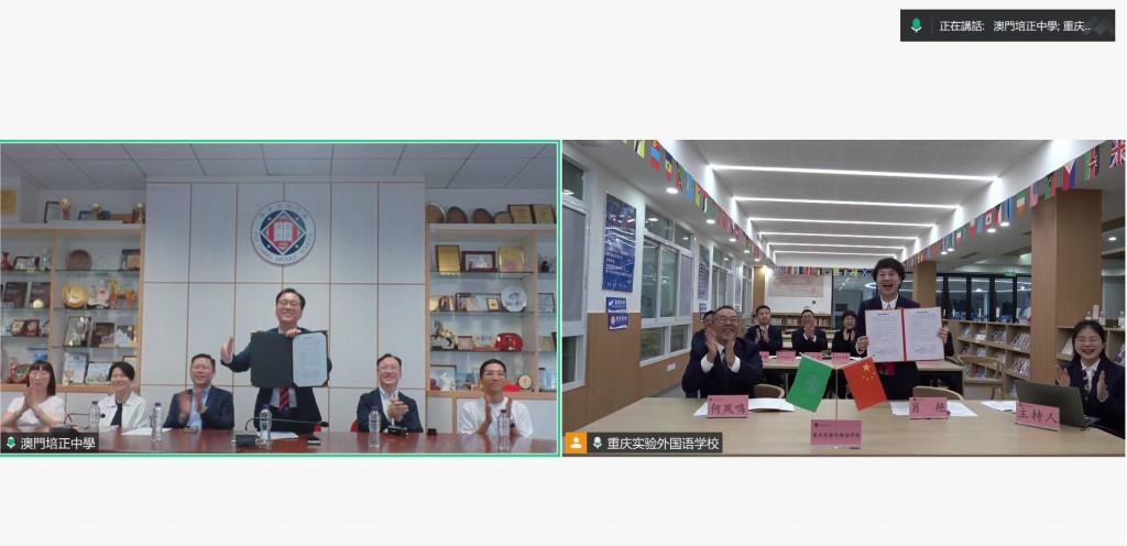 為促進渝澳兩地教育交流與合作,澳門培正中學與重慶實驗外國語學校於11月6日上午10時以線上形式舉行了姐妹學校簽約儀式。由本校高錦輝校長及重慶實驗外國語學校黨委書記肖艷代表雙方簽署協議。