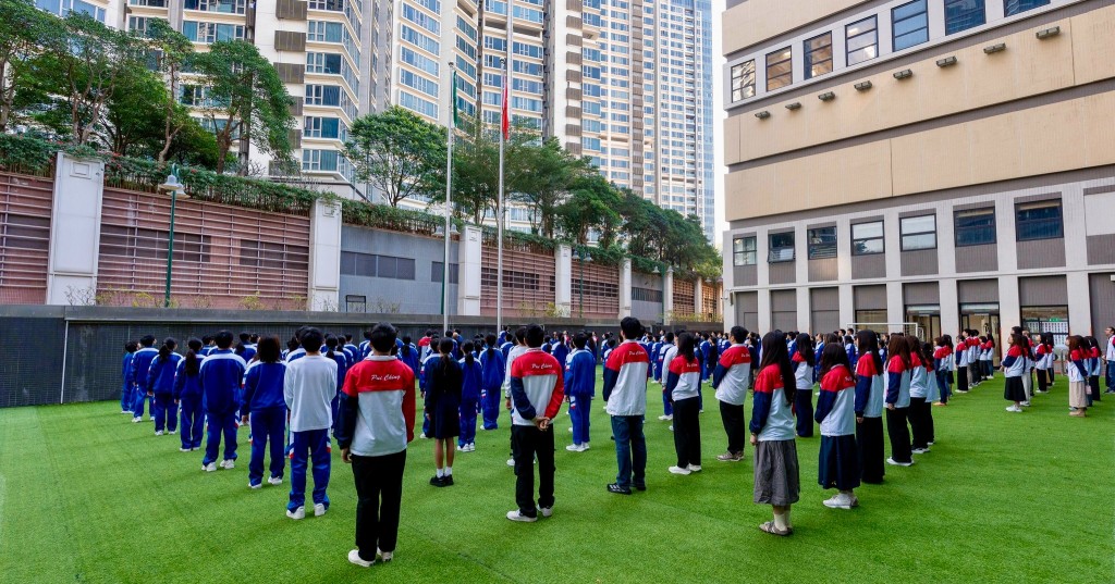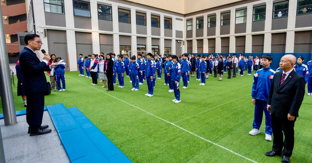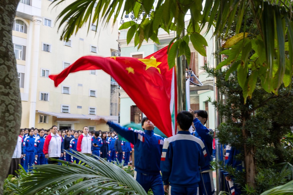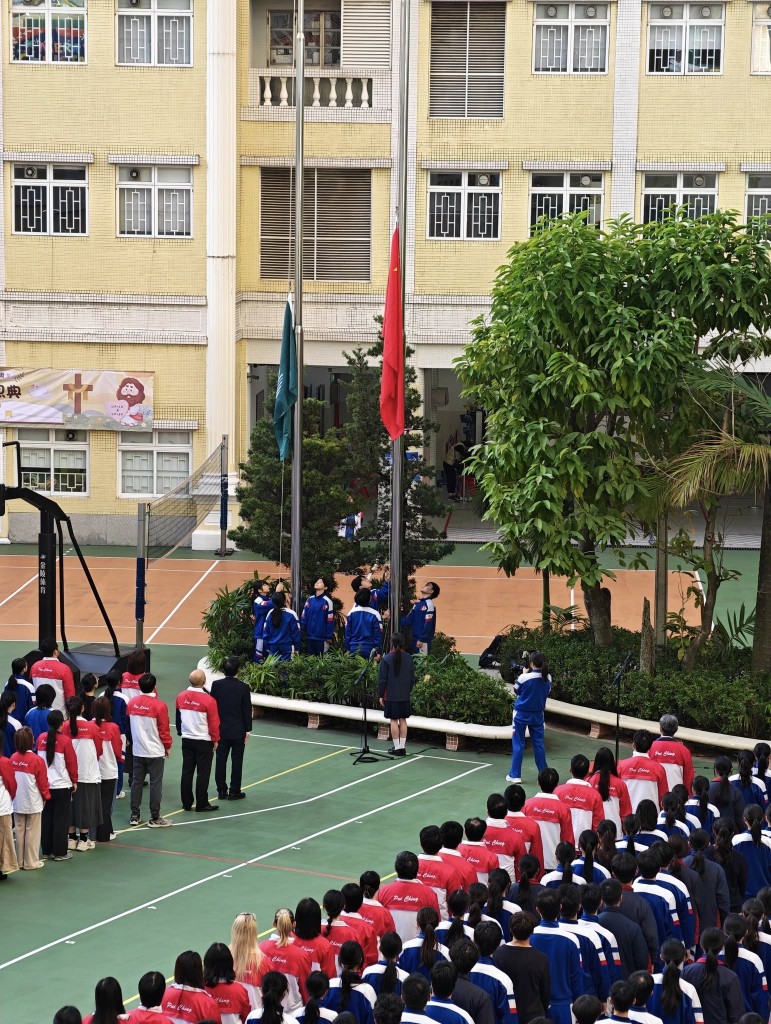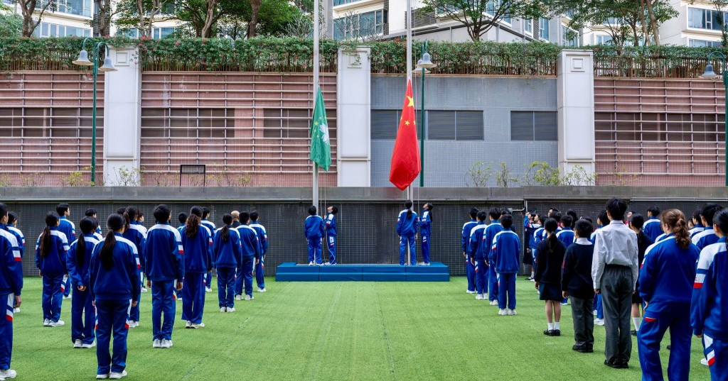 路環校部今早同舉行升旗儀式,師生共同見證國旗與區旗冉冉升起。