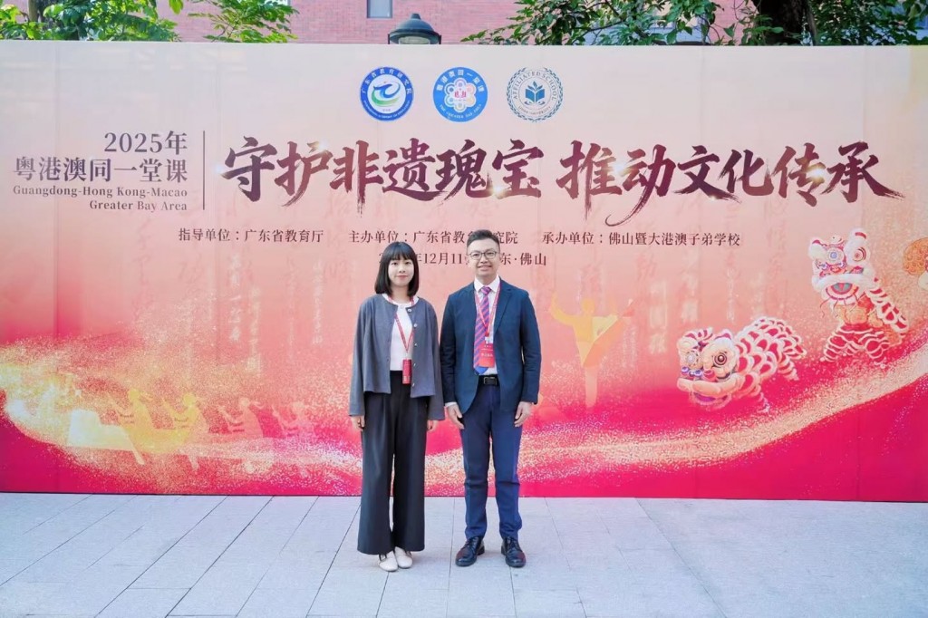 12月11日,本校林健邦主任與易敏彥老師應邀赴佛山參加「2025年粵港澳同一堂課:守護非遺瑰寶,推動文化傳承」交流活動。本次活動匯聚了來自粵港澳三地200多位教育工作者,共同探討非物質文化遺產在校園中的傳承與創新。