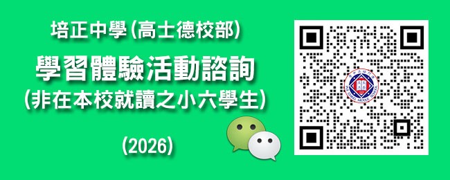 為讓非在本校就讀之小六學生深入感受本校獨特的教育氛圍與課程魅力,高士德校部將於2026年1月3日(星期六)上午舉行「學習體驗」主題活動。讓小六學生走進培正校園,探索知識天地,預覽精彩的學習生活。