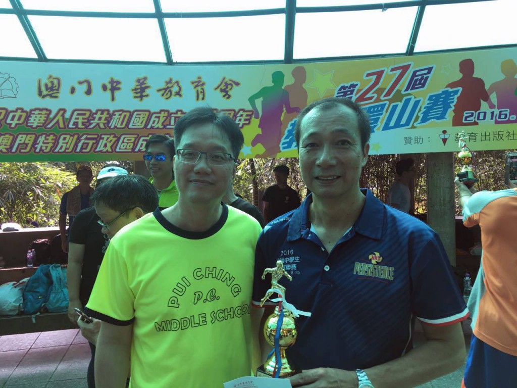 澳門中華教育會主辦之第27屆教師環山賽今早舉行,其中女子三組賽事,本校李瑞英老師、周谷華女士及榮休老師許雪萍分獲冠、亞、殿軍;男子三組比賽,梁永棠主任奪季軍。
