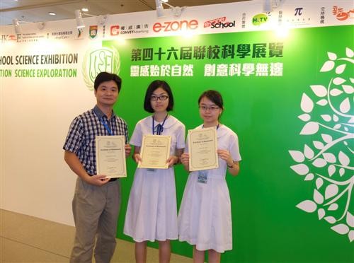 第四十六屆聯校科學展覽於8月23日至8月29日在香港中央圖書館舉行,本屆主題是"靈 感始於自然 創意科學無邊"。獲邀請參加是次展覽的外隊只有四隊,分別來自丹麥、印 度、泰國、澳門,而本校為澳門區唯一一所獲邀學校。黃燦霖老師帶同高中學生譚知微 和羅芷晴參加,與各隊師生交流,獲益良多。