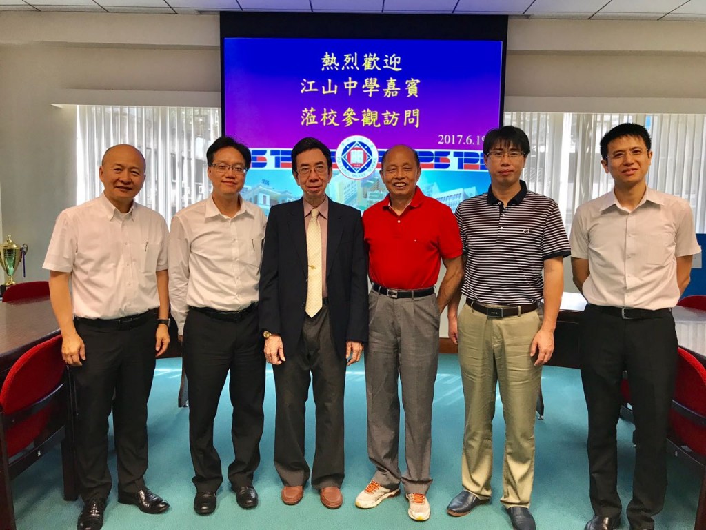 浙江省江山中學副校長徐敏及前副校長王昌明在本校前校長李祥立的陪同下於今天到訪本校,受到高錦輝校長、郭敬文副校長、陳敬濓副校長的熱情接待。高校長向來賓介紹本校教改成果。江山中學是一所省重點中學,本校與江山中學自1998年開始交流互訪,並確定建立聯誼學校關係。江山中學此行並邀請本校組團,於明年前往參加該校創校八十周年慶典,加強學術交流。