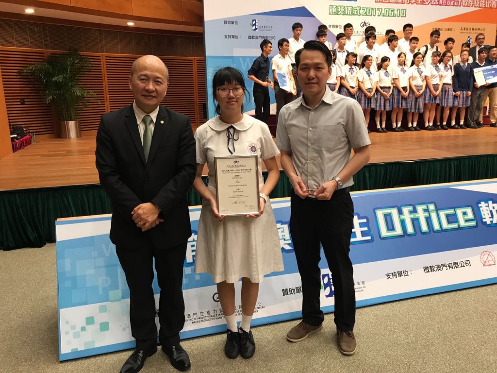 由澳門生産力暨科技轉移中心主辦之第九屆澳門學生Office軟件技能比賽,蒲慧慈同學獲Powerpoint亞軍。