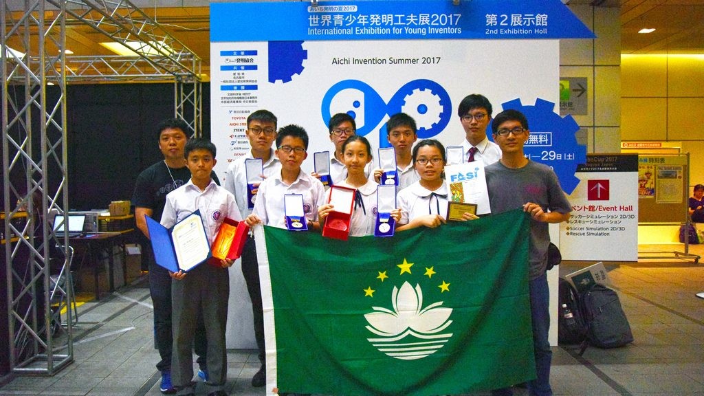 由日本發明創新研究所(JIU)主辦之國際青少年發明家展覽會於2017年7月27日至29日在日本名古屋舉行,本校學生在創新科技主任劉冠華及盧永強老師帶領下參賽。學生們的8份作品參賽中,獲得了1金(澳門隊唯一金獎)、2銀、3銅及5個專項獎的佳績。