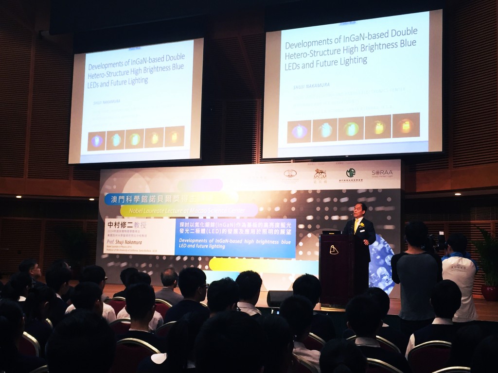 作爲響應2015國際光及光基技術年的活動之一,澳門科學館特別邀請了2014年諾貝爾物理學獎得主、美國加州大學聖塔芭芭拉分校工程學院材料系、固態照明及能源中心教授、有「藍光之父」美譽的中村修二教授於4月24日(星期五)親臨澳門科學館會議中心主講「探討以氮化銦鎵(InGaN)作為基板的高亮度藍光發光二極體(LED)的發展及應用於照明的展望」科普講座。