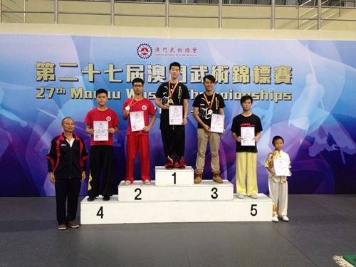 官宏浩同學參加第二十七屆澳門武術公開賽獲得男子傳統武術男子長拳類短器械冠軍、集體器械冠軍及男子南拳類長器械殿軍2014-06-28