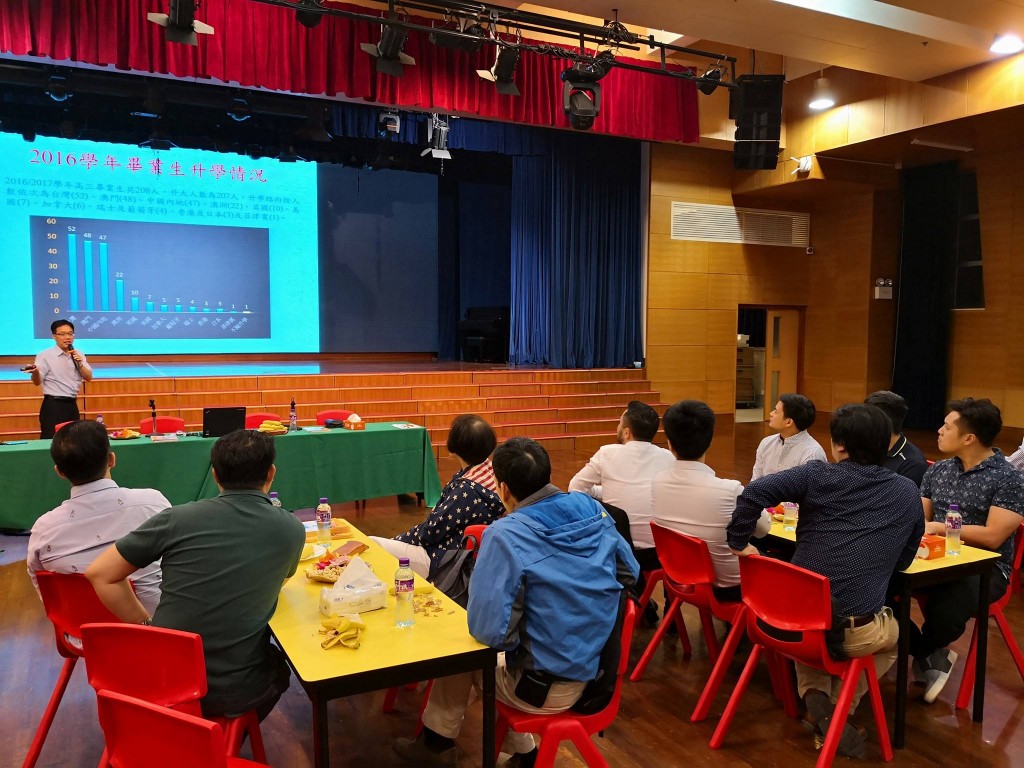 今晚,本校與澳門培正同學會合辦「紅藍兒女茶話會」。高錦輝校長、陳敬濂副校長向各級社校友介紹學校最新情況;同學會黃漢堅會長籲大家團結社友,關心母校及同學會。逾兩小時的茶話會,校友們各抒己見,表達對母校和同學會的關懷。
