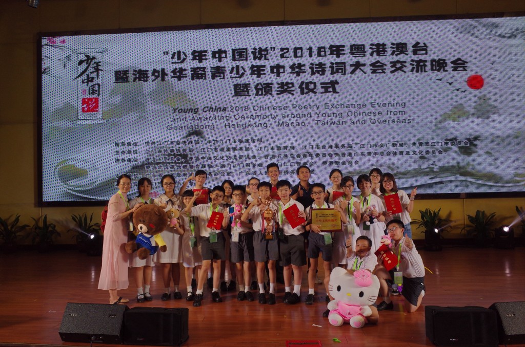 7月10日-12日,我校部分學生在三位老師帶領下,參加了“少年中國說”之2018年粵港澳台暨海外華裔青少年中華詩詞大會。總決賽已於日前在江門落幕。參賽隊伍共18支,分別來自江門、香港、澳門、台灣、美國芝加哥以及荷屬庫拉索等地。我校中學代表隊獲得三等獎,小學代表隊獲得中華文化傳播獎。