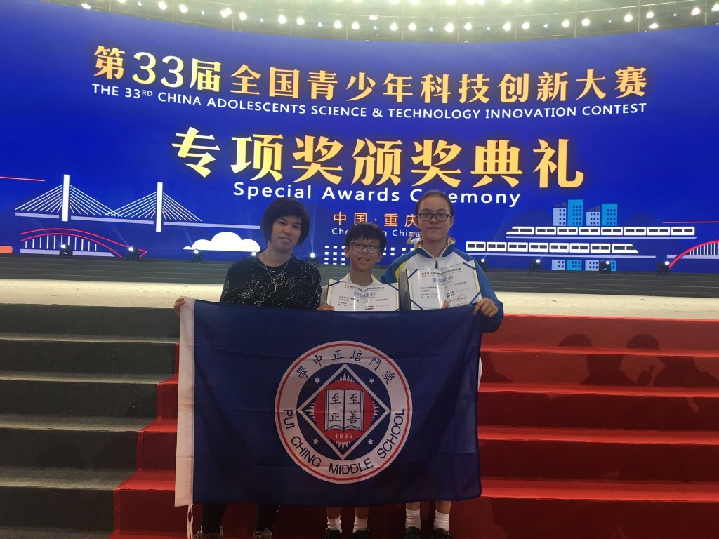 第33屆全國青少年科技創新大賽頒獎典禮於8月14-19日在重慶舉行,本校學生共獲得了5個獎項,由陳少婷老師指導的朱嫣然同學以作品「越位剋星」,林樂禧同學以作品「護眼器」,均獲得了DF創意之星二等獎及青少年科技創新項目二等獎;由梁瑩瑩、姚曉暉老師指導的馮俊熙和許凱欣同學,以作品「抗菌珊瑚肽質粒的構建和表達」,獲得了青少年科技創新項目二等獎。