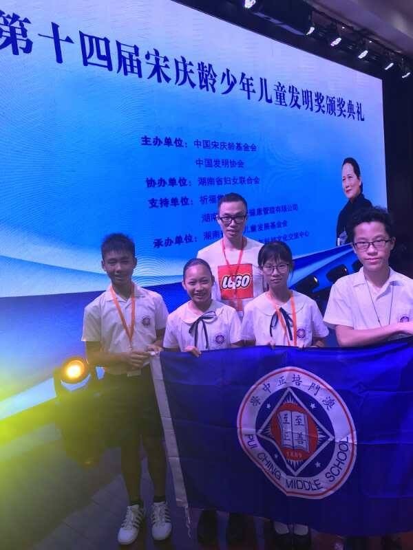 由中國宋慶齡基金會和中國發明協會主辦之第十四屆宋慶齡少年兒童發明獎於8月24日至28日進行,大會共收集了3033件作品,經甄選後,共300件發明作品入圍,最終評選出金獎30名,銀獎60名和銅獎180名。本校共有4件發明作品入圍,經最終評審後,由袁國展老師指導的曾子樂及其作品「防堵車大橋裝置」獲得「金獎」、劉奕彤及其作品「機場行李防盜裝置」獲得「銀獎」、鄧賜恩及其作品「長途車防睡帽」獲得「銅獎」、胡樂軒及其作品「家居休眠系統」獲得「銅獎」,成績令人鼓舞。