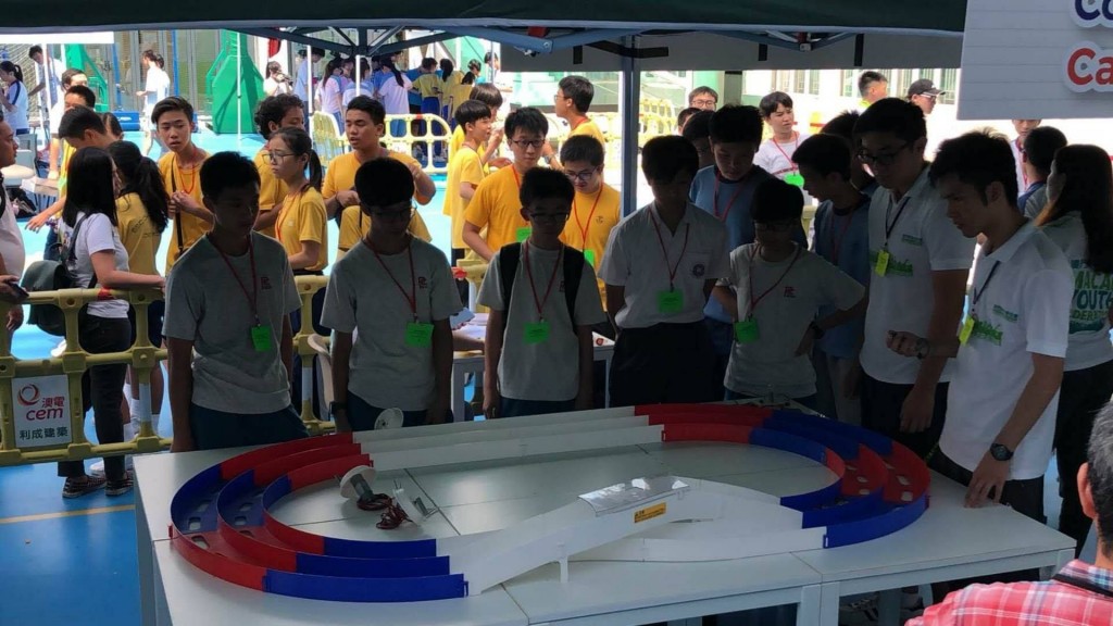 我校師生於昨日參加由澳門電力股份有限公司主辦,澳門工會聯合總會、澳門青年聯合會、澳門中華學生聯合總會協辦的“第六屆澳電太陽能及電容模型車比賽”,今次比賽吸引全澳25間中學,超過600名師生積極參與。我校初二高德其、陳浩徽、李柏僑、陳烈埼、蘇進翀同學順利通過預賽、複賽,並憑藉在決賽中穩定的發揮取得電容模型車比賽季軍,將以三甲資格代表澳門出戰香港的“二○一八應用可再生能源設計暨競技大賽”。