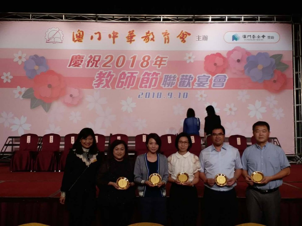 本校秦光明老師、梁沛津老師、羅錦霞老師、黎美珊老師、楊玉婷老師春風化雨二十載,於今晚教師節聯歡宴會上獲頒感謝狀。