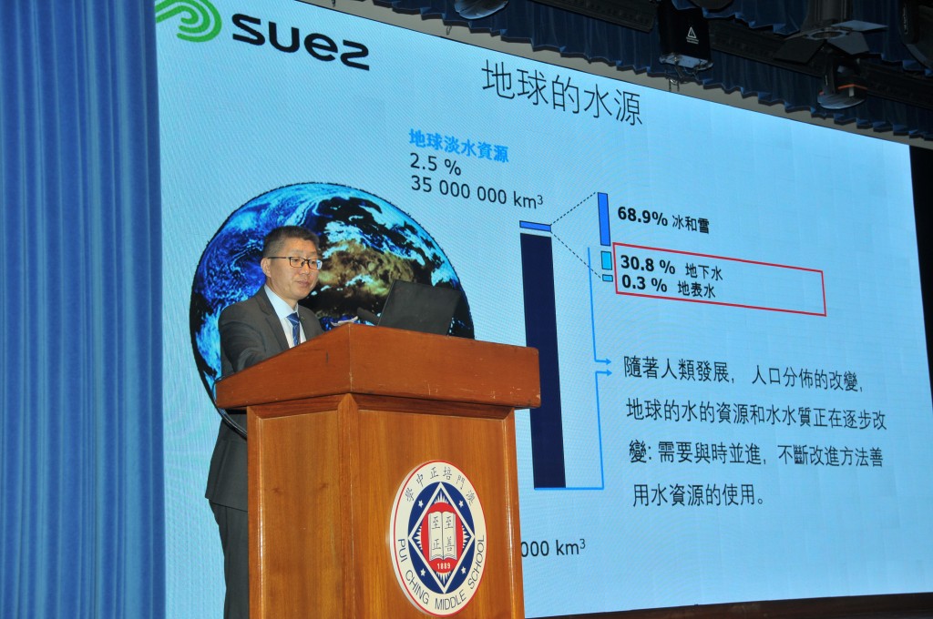 由澳門科學技術協進會主辦的「院士專家走進校園科普活動」今早在本校禮堂舉行,是次活動邀請了澳門自來水股份有限公司執行董事范曉軍博士,為初一、二級同學主持科普講座,並以「水和污水處理技術原理」為題,向師生分享世界淨水領域的技術應用,讓同學對污水處理技術的原理有更深入的認識,也啟發學生思考水資源日益短缺的問題。